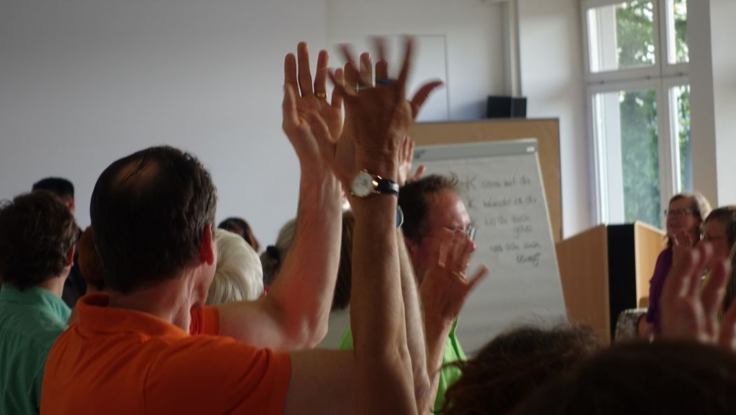 "Voller Freude und Erfülltheit schauen wir auf einen gemeinsamen Tag in der Jugendherberge. 100 Teilnehmer, 12 TrainerInnen und 5 Mitgestalter erlebten einen inspirierenden Tag in einer GFK-Gemeinschaft auf Zeit"……